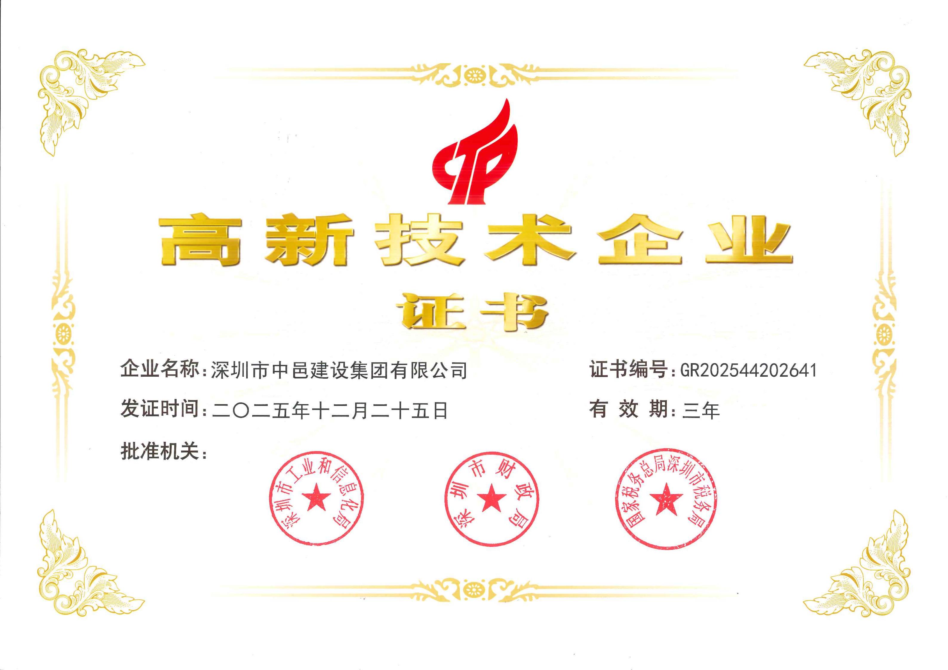 高新技术企业证书